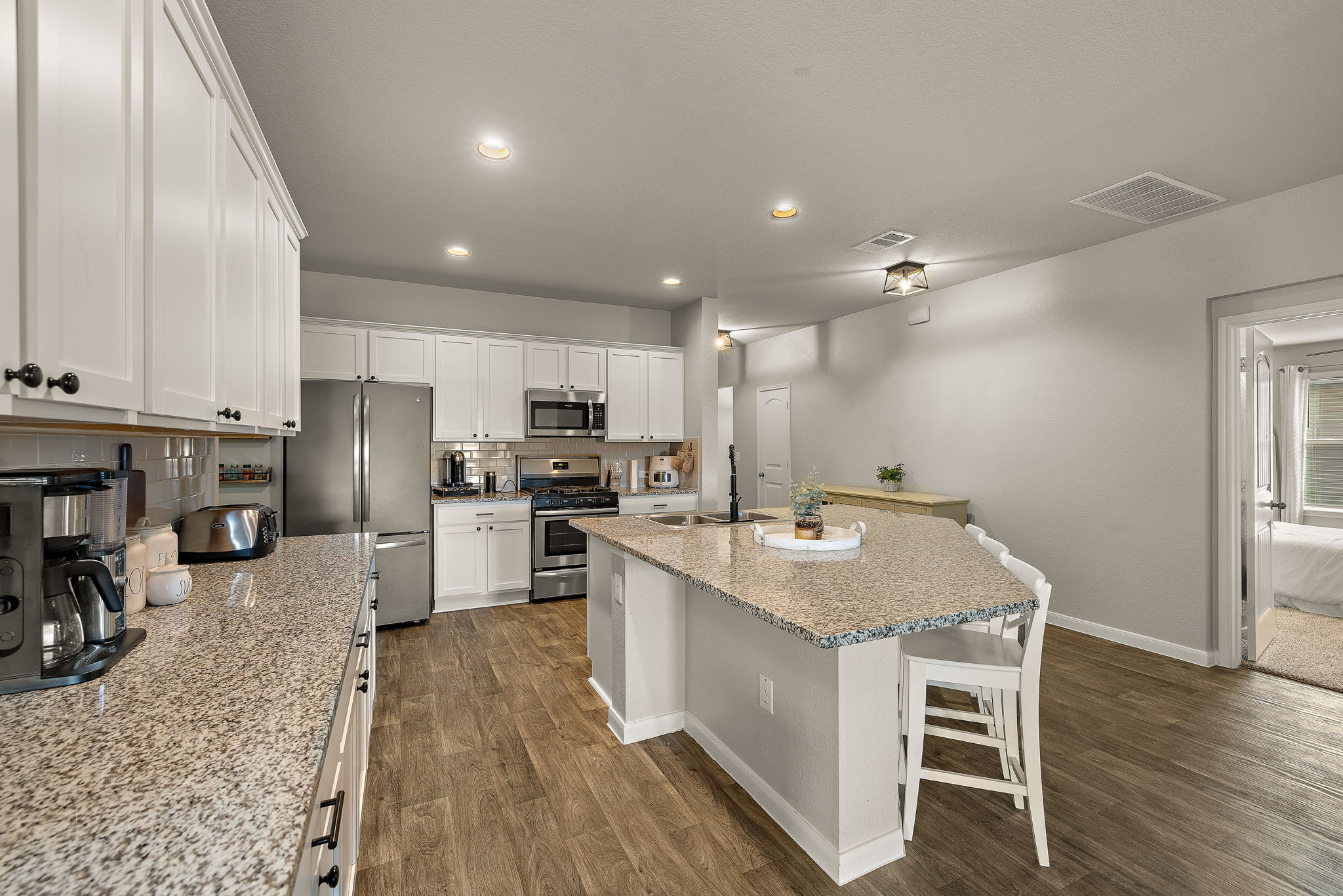 A home that truly stands out from the rest! Welcome to 1006 Pembroke in Hutto, Texas, a home that checks every box and then some. This beautiful property has been lovingly maintained and shines like new construction, only better. Tucked away on a quiet cul-de-sac, this location is ideal for those who love a little peace and playtime. Whether it’s evening bike rides, kids playing safely, or just enjoying the extra privacy, you’ll love the neighborhood setting. Plus, you’re just around the corner from Hutto Elementary, making morning drop-offs a breeze. Step inside to discover 4 spacious bedrooms, gorgeous LVP flooring, and a kitchen made for gathering, complete with a massive island that’s perfect for casual breakfasts or hosting friends. Every corner of this home has personality, from the shiplap fireplace that adds warmth and charm to the modern accent wall in the primary suite that gives it a stylish touch. The backyard is oversized, perfect for entertaining, pets, or even a future pool, and includes a large shed that stays with the home. The garage is another bonus, offering extra space for a gym, workshop, or hobby area. And with brand-new carpet installed in October 2025, this home is move-in ready and waiting for you. This home is also in extremely close proximity to Fritz Park that is getting a whole new look and will have a splash pad, walking trails, skate park, and new park area. Come see why 1006 Pembroke is a home that feels as good as it looks. Schedule your showing today!